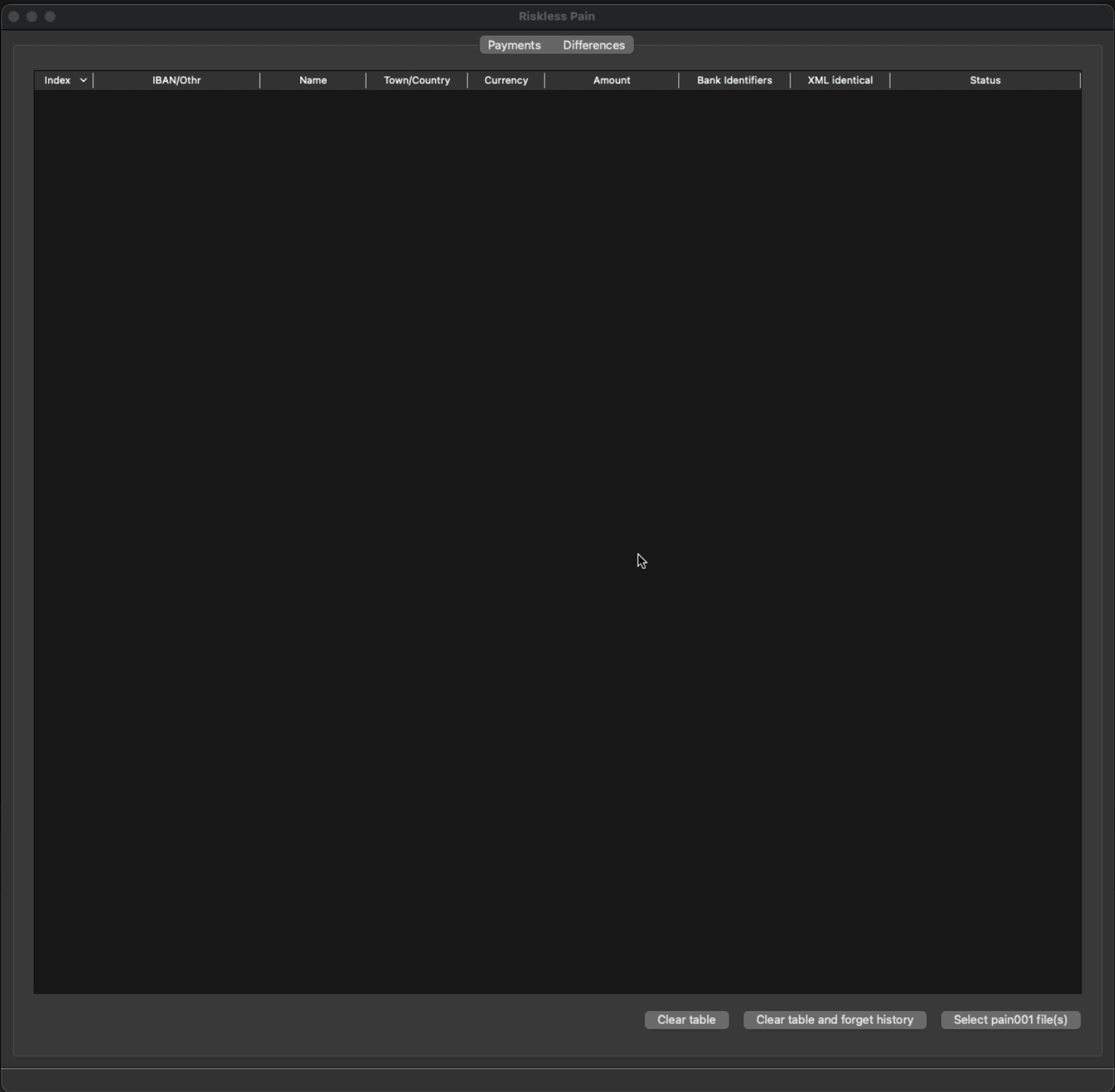We hope the "riskless pain" tool is helpful to all people who would like to show details of pain.001.001 files. However, there is absolutely no warranty whatsoever, because simply put, pain001 files are pretty complex. We assume that when looking at all CdtTrfTxInf XML tag you should know to whom you send money, but this assumption could be wrong. However, we support version pain.001.001.01 all the way up to pain.001.001.11.xsd and also the Swiss standard. We're pretty sure the tool will fail for other national standards that are not compatible with the ISO20022 international XML schemes. We also have only tested the tool with a couple of XML test files that are again only a selection from a handful of XML schemas out of the many supported ones. We did not look through each and every version to make sure that looking at CdtTrfTxInf tags in the XML files is sufficient. We haven't even read the ISO2022 standard. So please take this with a grain of salt and let us know if you find a way to transfer money to an attacker without the GUI warning of a modification (or showing any details in the XML tab).